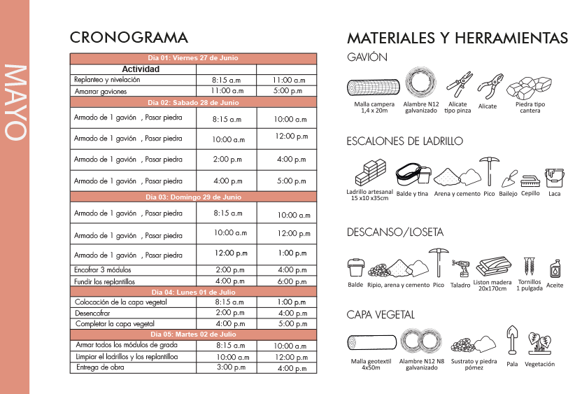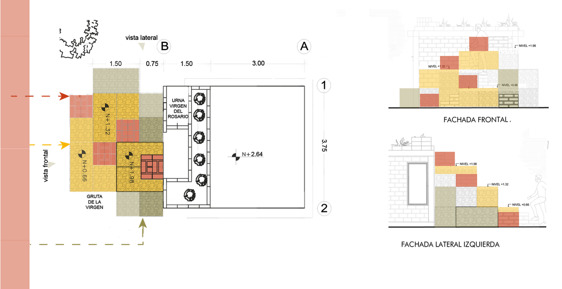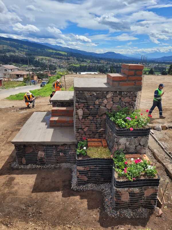 Julio 2025 Espacio de culto. Gruta Construido y en uso $1.620 Diseño, planificación y construcción: Con Lo Que Hay 26 - PUCE FHIC Jonatan Arias, Alejandra Arrobo, Nicolás Casco, Willy Cofre, Mary Cojitambo, Keila Gualotuña, Byron Huaraca, Martín Jara, Andrea Lema, Steven Matango, Emily Moya, Anthony Peláez, Romina Segovia, Francisco Vera, Christopher Vivas Tutor: Enrique Villacís Asesoría profesional: Ensusitio - Cynthia Ayarza Asesoría estructural: Ing. Patricio Cevallos Asesoría Taller FADA PUCE: Carlos Fernández, Hason Boadare Comunidad El Rosario de Amaguaña: Luis Paucar Presidente del Barrio Directiva, Priostes y vecinos del barrio. Mingas, estadía y alimentación Fotografías: Con Lo que Hay 26 - Ensusitio Sistematización: Taller - Con Lo que Hay 26 AGRADECIMIENTOS Y COLABORACIONES Andrea Ampudia, CLQH 6, por conectarnos con El Rosario . Transporte: Transporte de carga pesada Vivas Gestión en materiales modulo con vegetación: Andrea Lema |